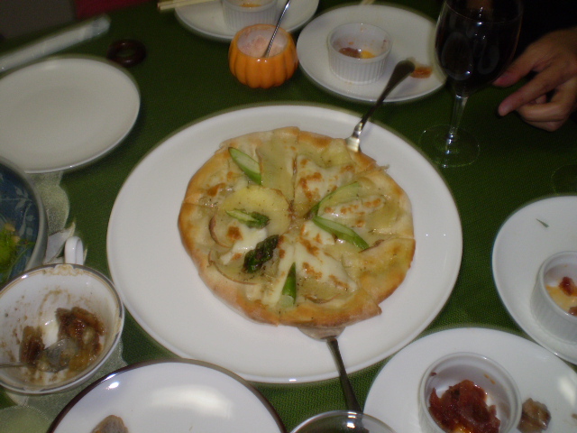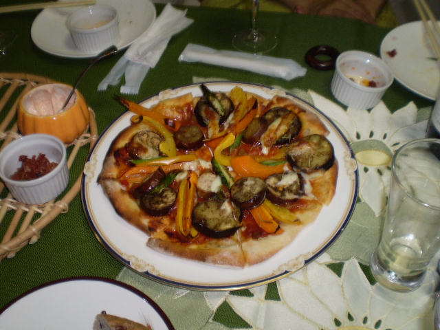 ジャガイモとアスパラのピザ ナスとパプリカのピザ