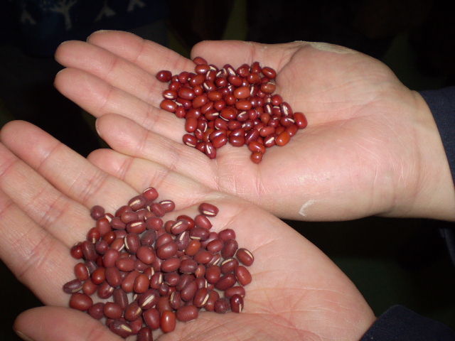 磨きをかけるとピカピカになります 上の小豆が磨いたもの 一目瞭然