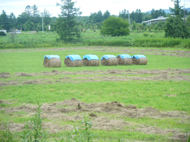 牧草ロールが転がっています