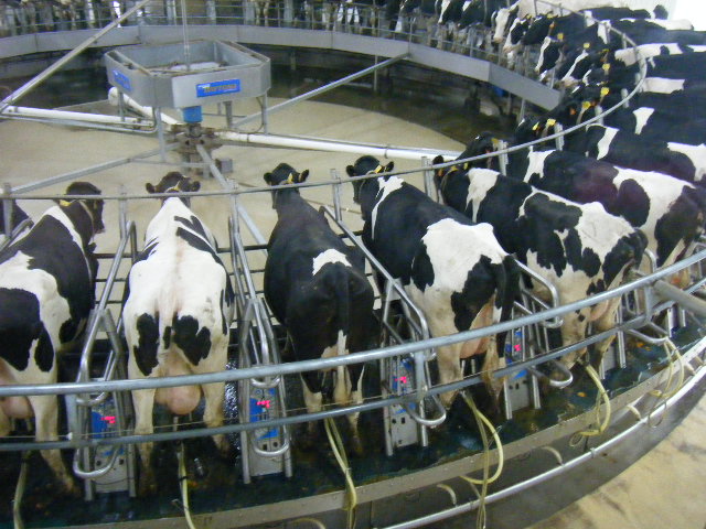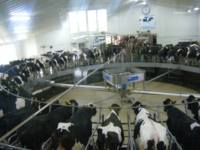 搾乳されている超近代的な牧場です
