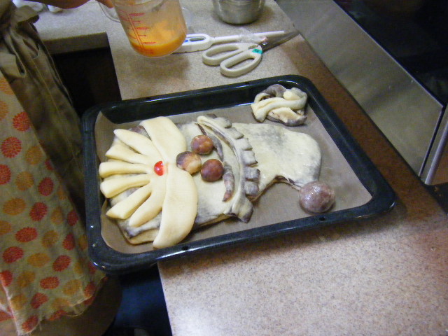 チョコを折り込んだ生地に顔のパーツをのせると