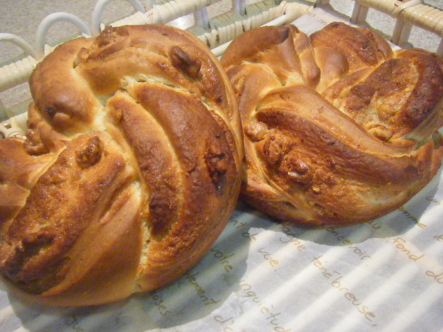 くるみの入った甘いフィリングを巻いたお菓子のようなパンです