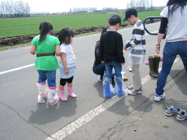 畑に入る前にビニールのオーバーブーツを履いて準備完了