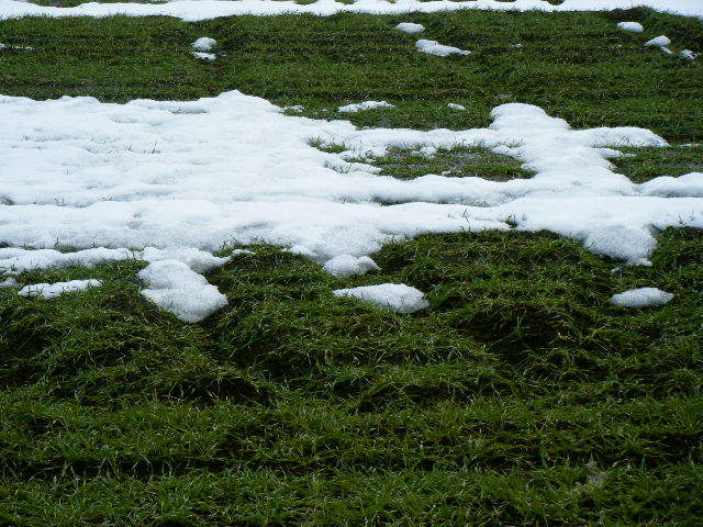 雪の下で冬を越した小麦たちが元気な顔を出しました