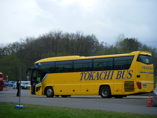 駐車場の黄色い十勝バス