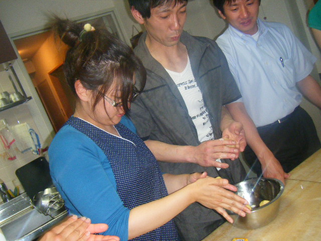 相互理解を深める意味もあって男女のペアになり手捏ねから